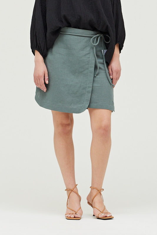 LINEN BLEND SKIRT W/ TIE