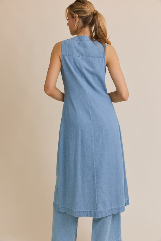LONG LINE DENIM VEST