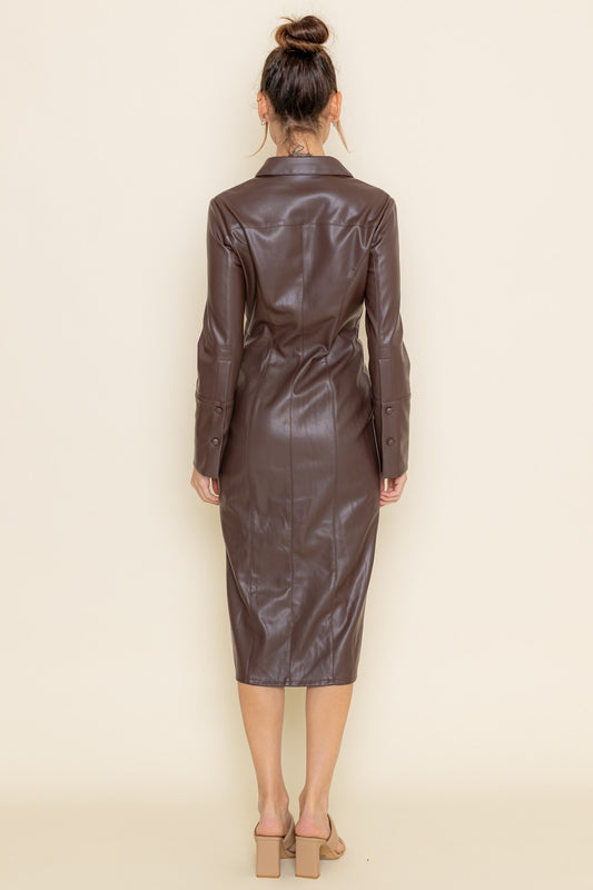 FLORAL PRINT DETAIL MINI FAUX LEATHER DRESS