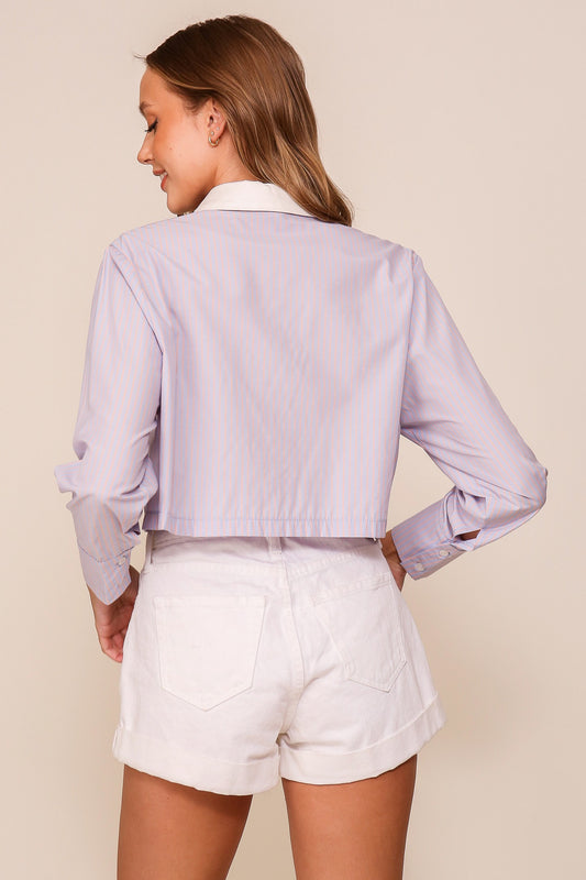 STRIPE CROP BUTTON DOWN